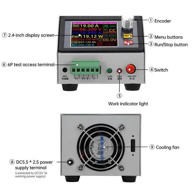 DC 12V CNC Electronic Load Tester Voltage Current Power Monitor LED Display 0~150V 20A 150W With Temperature Controller