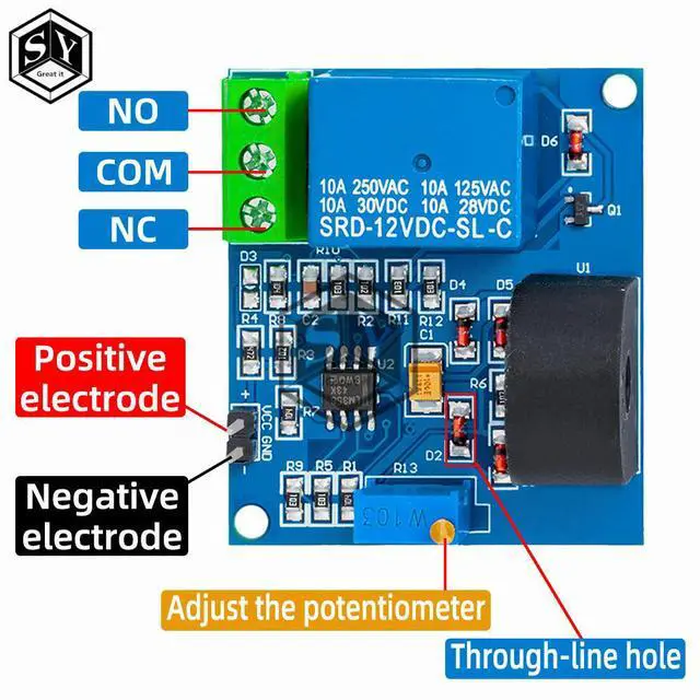 DC 12V Relays AC Current Detection Sensor Module 5A Overcurrent Protection Switch Sensor Board for
