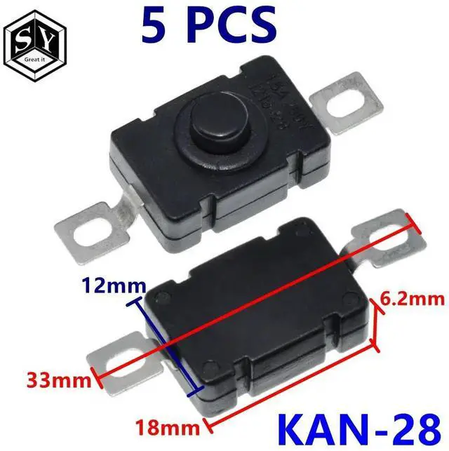 5pcs KAN-28 1.5A250V Flashlight Switches Self Locking SMD Type 18 x 12mm Push Button Switches 1812-28A