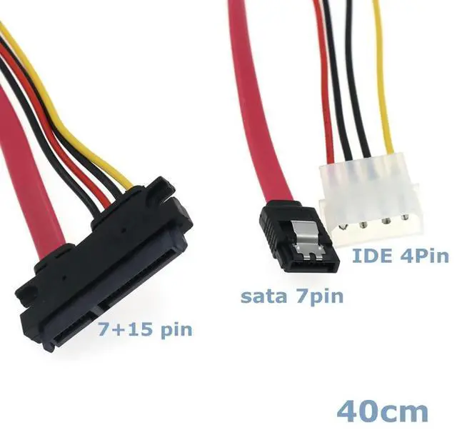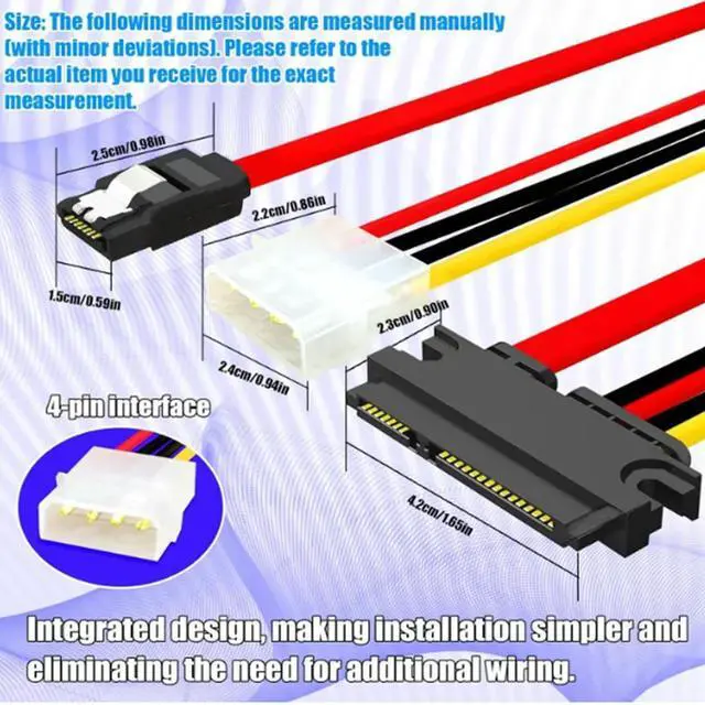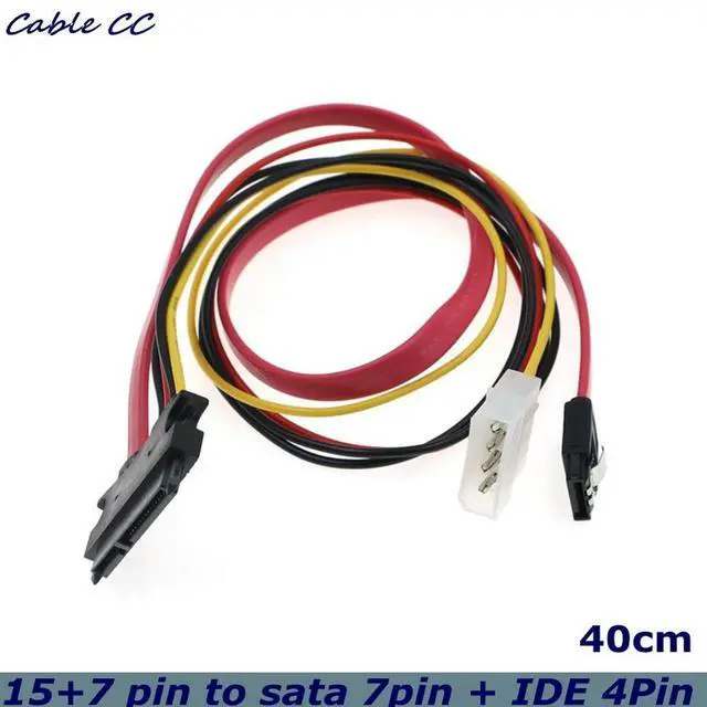 SATA Hard Drive Data Power Combination Cable - 7+15-pin 22-pin Adapter to Molex 4Pin Power + Motherboard SATA Data Cable