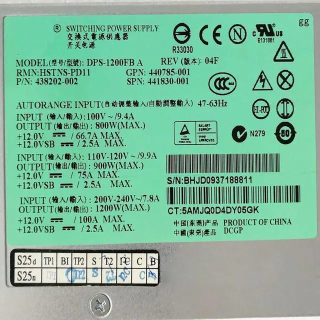 DPS-1200FB A For DL580G5 Server Power Supply 438202-002 440785-001 1200W