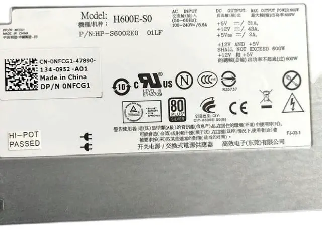 H600E-S0 For MD1200 3200 3220 MD3600 Power Supply NFCG1 0NFCG1 600W