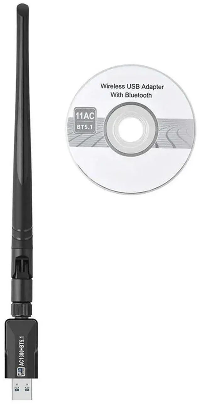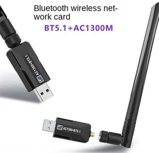 1Set High Speed 1300Mbps Wifi Wireless Network Card USB 3.0 Bluetooth 5.1 Receiver Black For PC