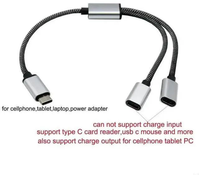 Replacement USB C Male to Double USB C Female Splitter Extension Adapter
