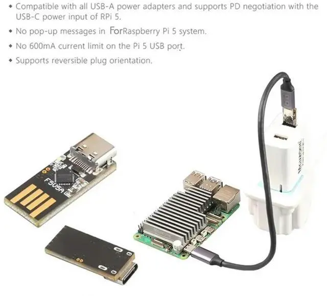 For Pi5 USB A-C PD Adapter With Cable Mini PD Trigger Activation Power USB-A To USB-C For Pi 5