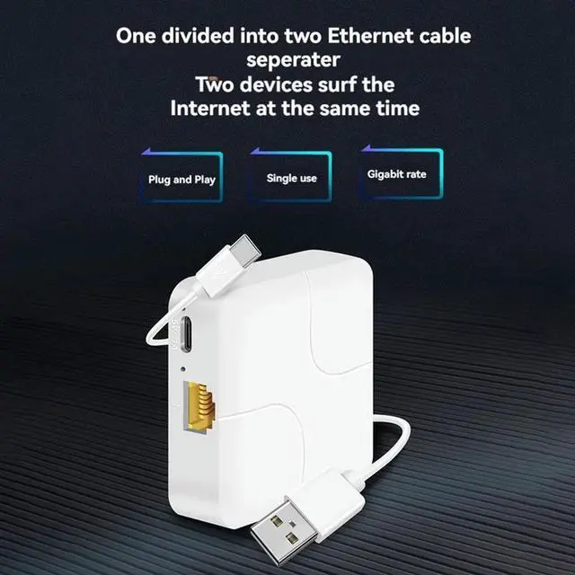 Universal Network Cable Extension Ethernet Splitter High Speed Usb C Power Gigabit Internet Rj45 Splitter Adapter
