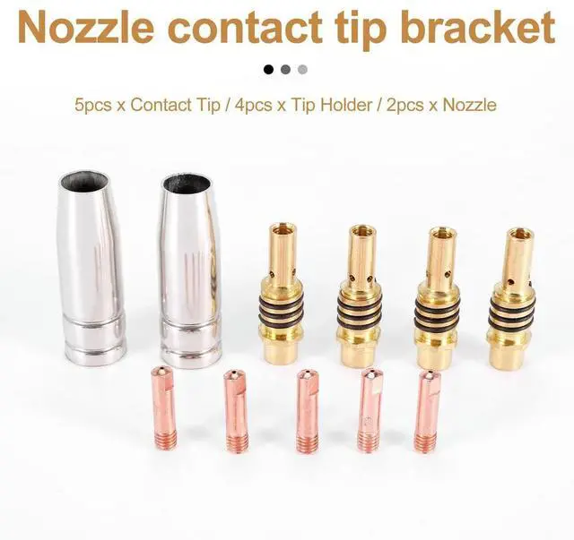 11Pcs/Set Mig Welding Nozzle Welder Torch Nozzles Gold Tip Holder Contact Tips 0.040 Inch Gas Diffuser Set For Torches-N33R