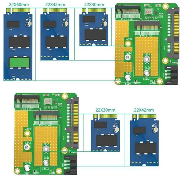 Dual M. 2 (NGFF) SSD To Dual SATA3 Adapter Card SATA3 Adapter Card Computer Accessories Black Plastic