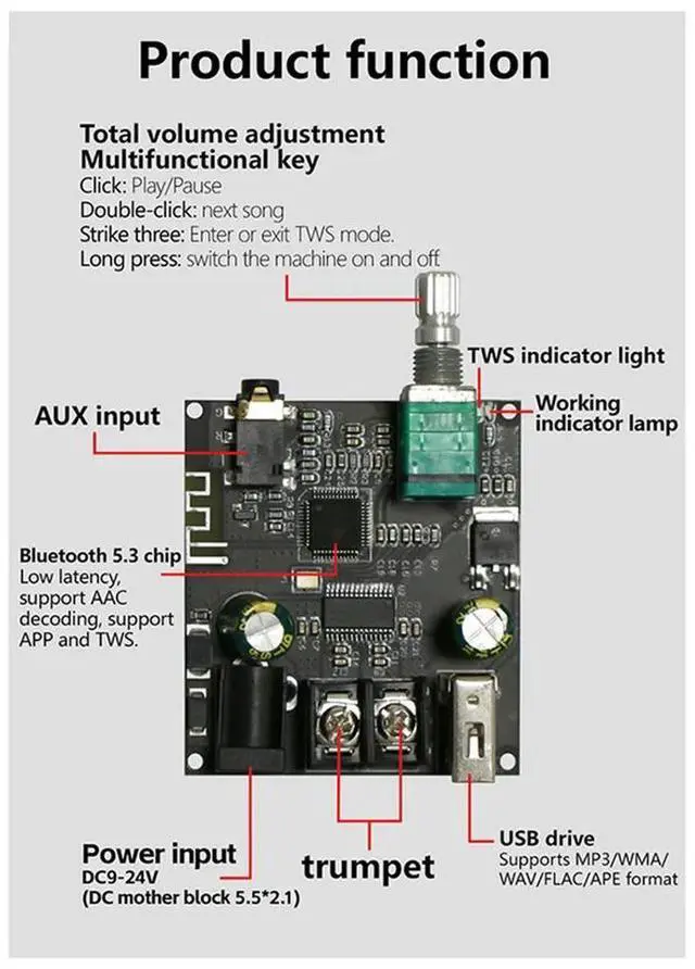 ZK301B Mono 30W BT5.3 Digital Audio Amplifier Module Supports True Wireless TWS With APP DIY Simple Mono Amplifier Board-N33R
