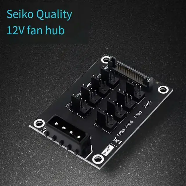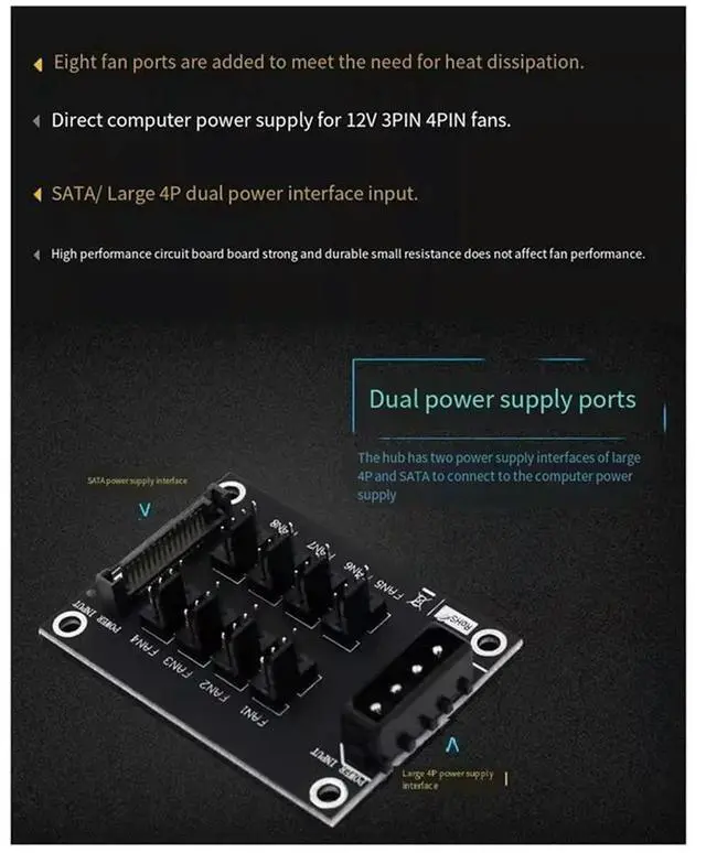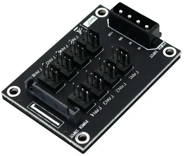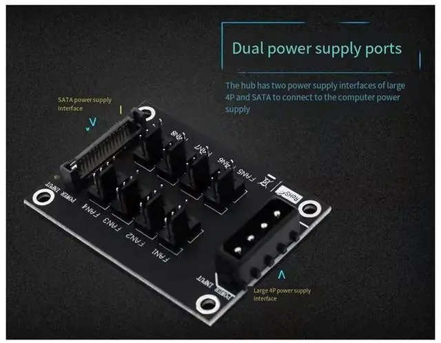 Universal 12V Computer Chassis Fan Hub Expansion Card 8-Port HUB Dual Power Port Input Fan Hub Fan Adapter, Durable