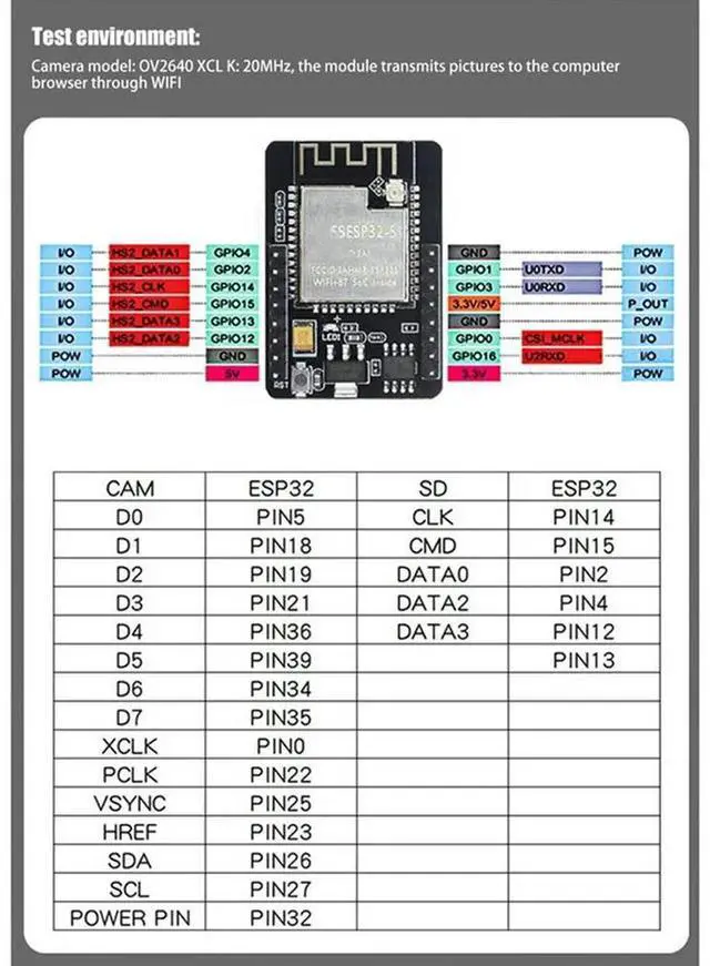 ESP32-CAM Development Board+OV2640 Camera Module Set 520KB+4M PSRAM WIFI+Bluetooth Ultra Low Powers Iot Module 5V-N33R