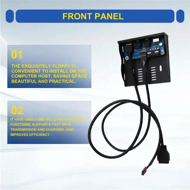 19Pin 2-Port USB 3.0 Front Panel For PC With Audio/Mic Jack And BC 1.2 Fast Charging - Fits 3.5" Floppy Bay
