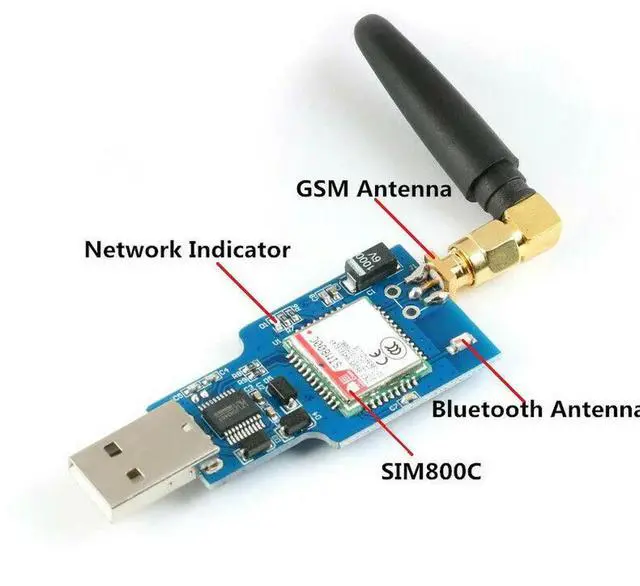 Usb To Gsm Serial Gprs Sim800c Module Bluetooth Computer Control + Antenna