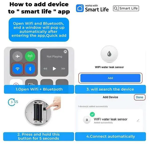 Tuya Wifi Water Leak Sensor Flood Leakage Detector With Sound Alarm 80Db IP55 Waterproof Water Sensor Remote Monitor-N33R