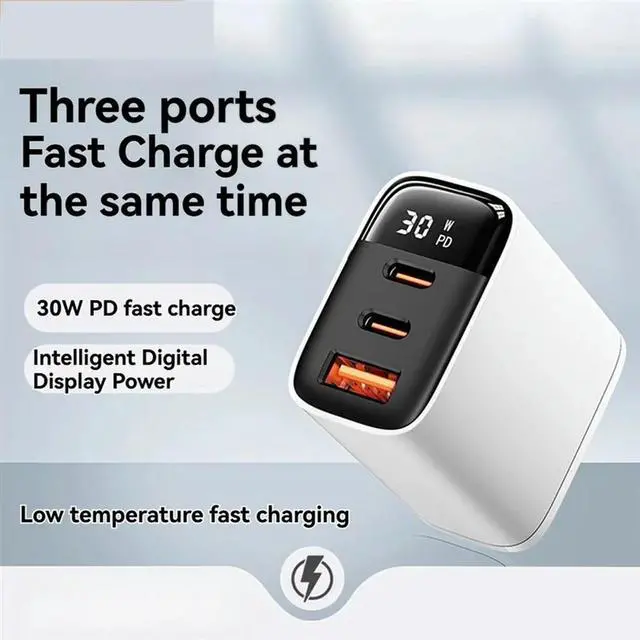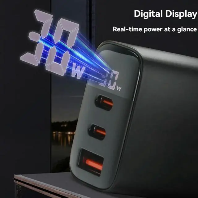 30W Multiple Sockets Charger Digital Display Quick Charge Fast Type C USB Charger For Laptop Phone B US Plug-N33R