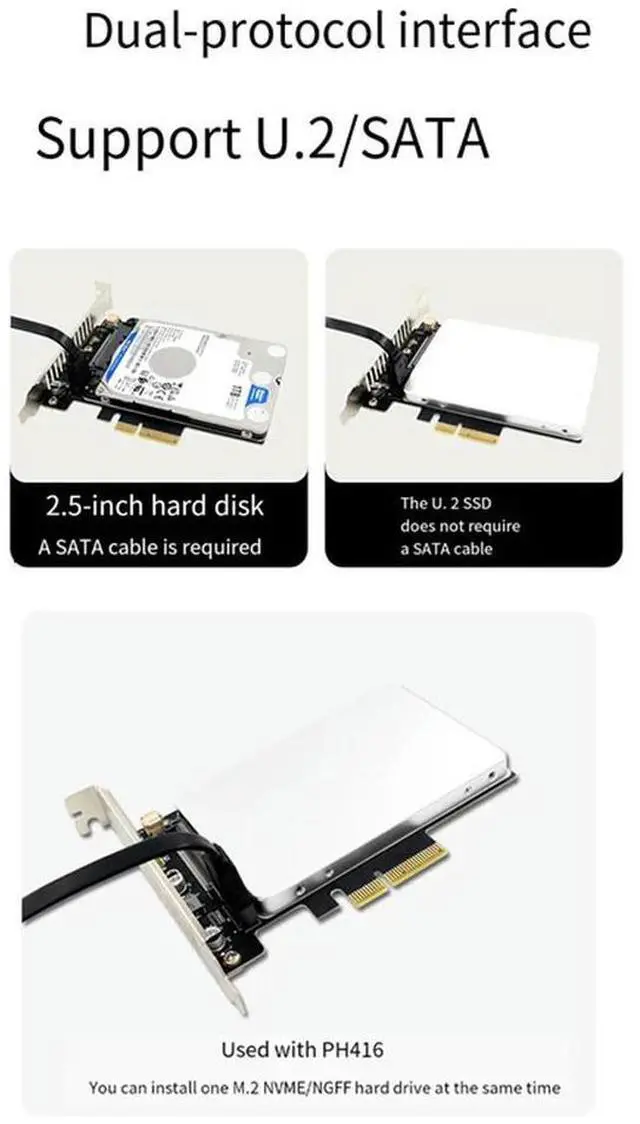 U.2 SSD To PCIE4.0 Riser Card PCI Express 4.0 X4 X8 X16 SFF-8639 Expansion Card Computer Accessories For 8/10/L