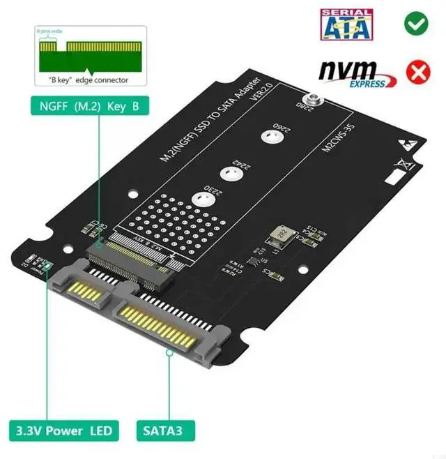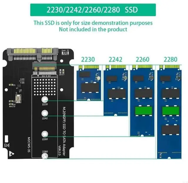 Key NVME SSD to 2.5I nch Adapters Convert NVME SSD to 2.5" Card for 2230/2242/2260/2280