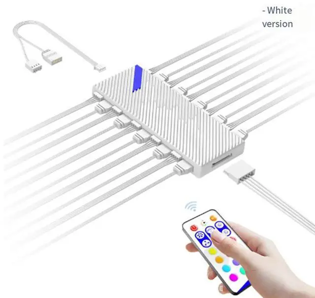 5V SATA Magnetic Cooling Fan Hub With ARGB 3Pin PWM Speed Controller And Smart Remote Control For Desktops