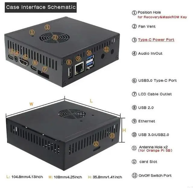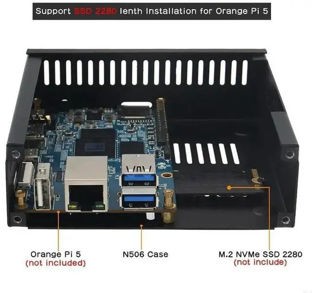 N506 Metal Enclosure Box for Orange 5 5B with Cooling Fan Heatsinks Supports NVMe SSD 2280 and External Antenna