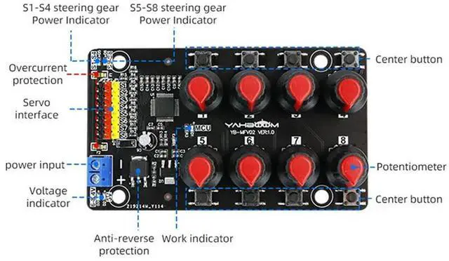 Servo Controller Module Robot Arm Test Board Driver Knob 8-Way Pwm Development Industrial Control Debugging Board