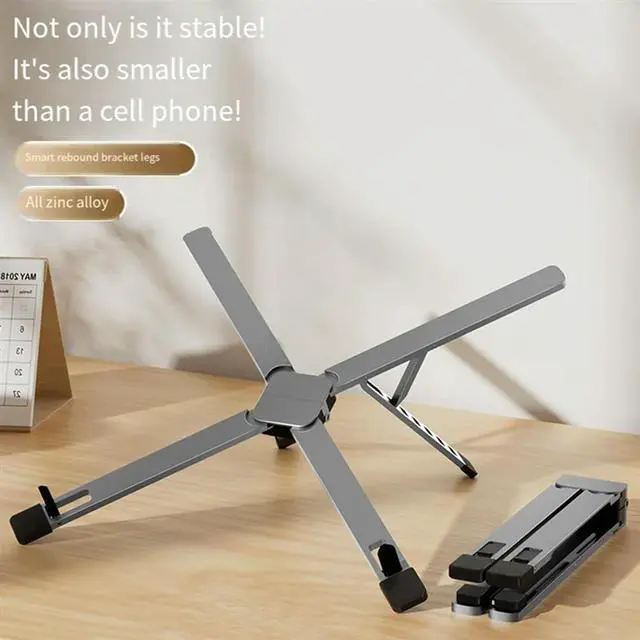Heightening Foldable Laptop Holder, Portable Cooling Stand For Enhanced Heat Management, Silver