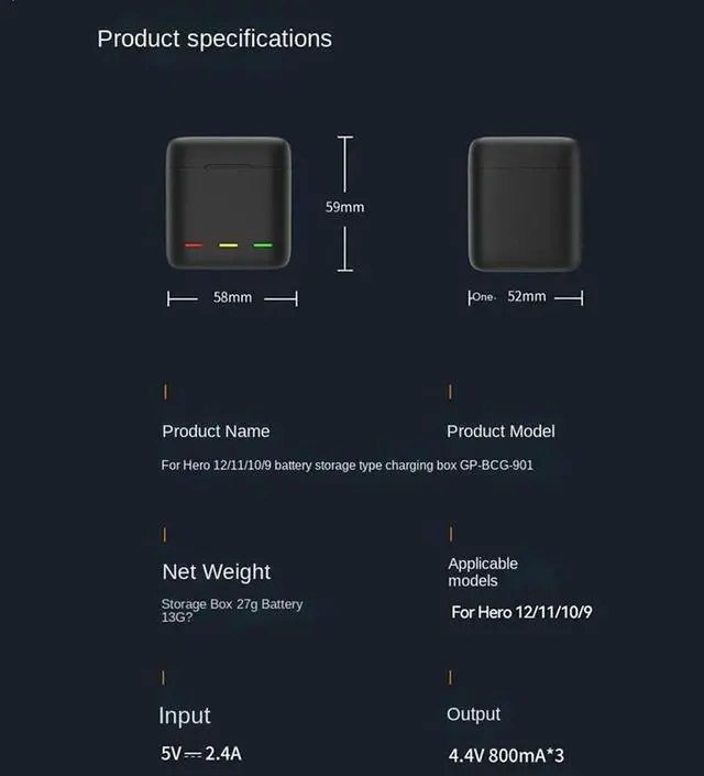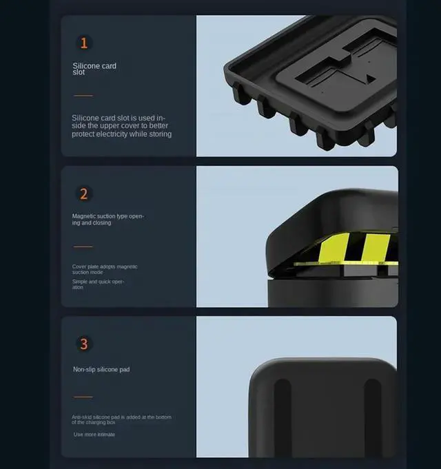 TELESIN Compartment For Gopro Hero 12 11 10 9 3 Slots LED Light Charger TF Card Storage Box-N33R