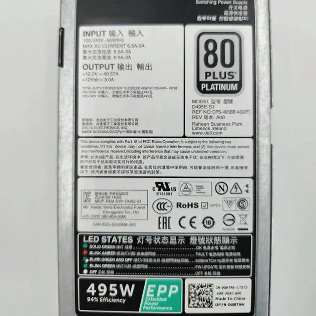For R630 R730 T430 T630 495W Server Power Supply DPS-495BB A D495E-S1 GRTNK EPP