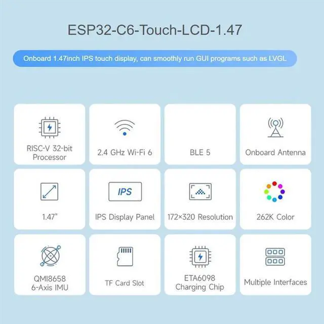 ESP32-C6 1.47Inch Touch Display Development Board ESP32-C6 Touch Display Development Board Supports Wi-Fi 6 / BLE 5