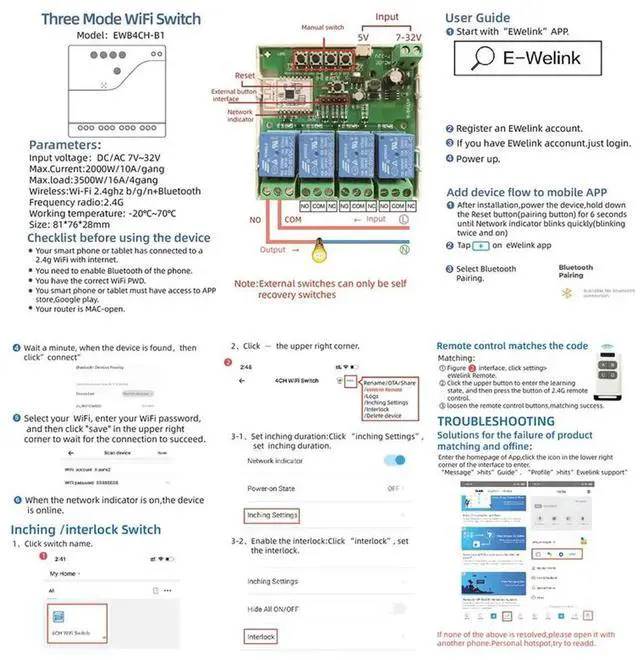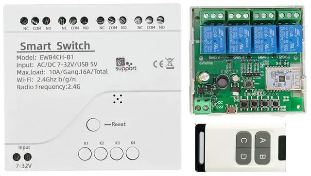 Ewelink Smart Wifi Bluetooth Switch Relay Module+Remote 7-32V On Off Controller 4CH 2.4G Wifi Remote For Alexa-N33R