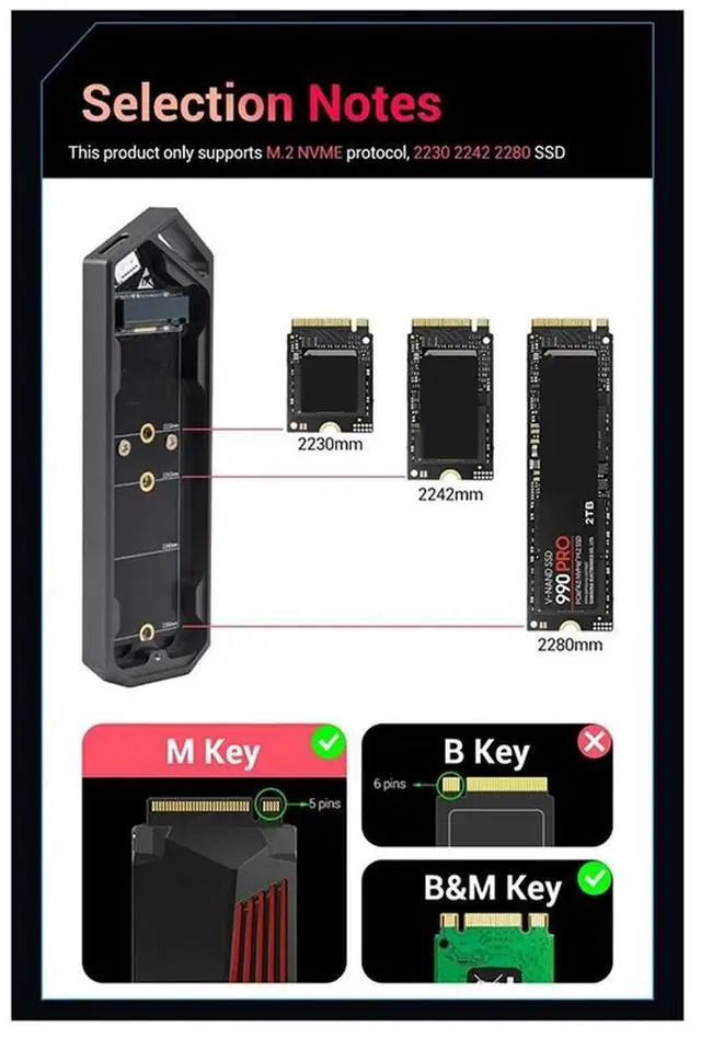 Dual Protocol M2 SSD Case Nvme USB 3.1 Type C Gen2 10Gbps Enclosure Aluminum Alloy M. 2 Nvme Hard Drive Box 2230 2242-N33R