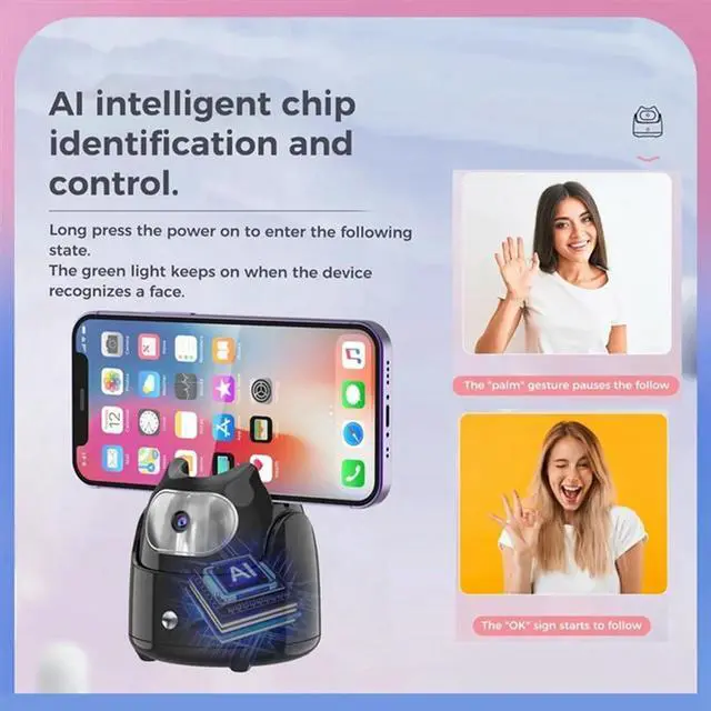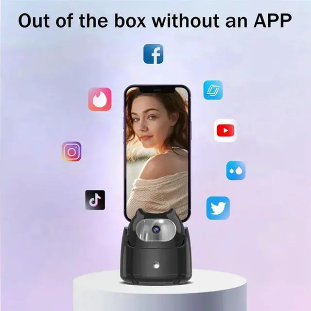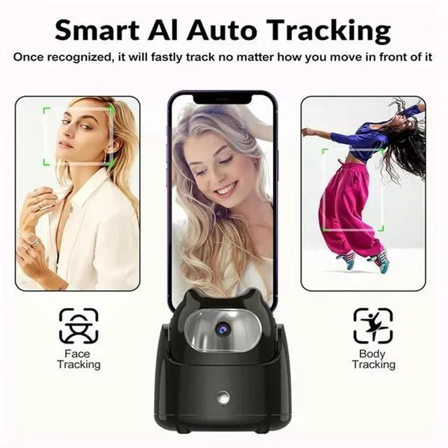 Automatic Face Tracking Gimbal Mobile Phone Holder 360° Rotation AI Face Recognition Phone Tripod For Vlog Video Durable Black-N