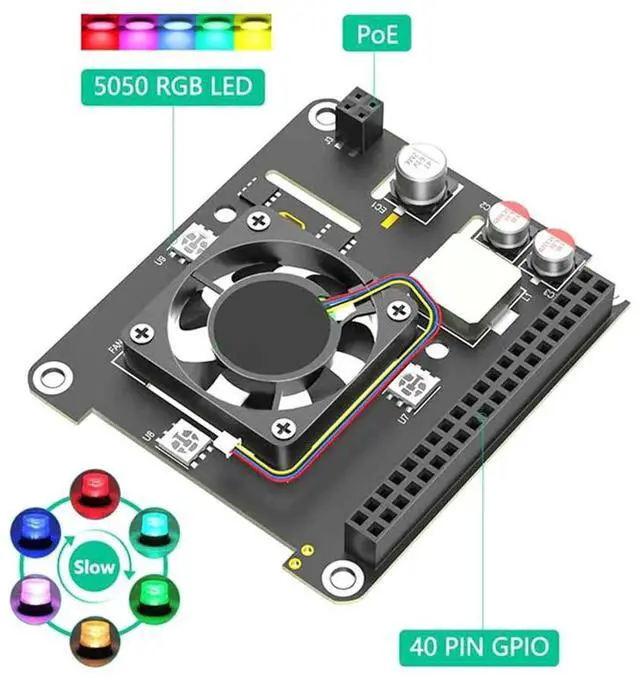For Pi 5 POE Ethernet Power Supply Module With Fan RGB Light 802.3A f/At M. 2 NVME To Pcie Adapter