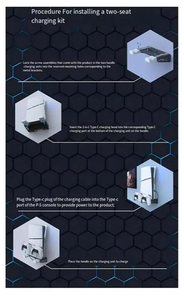 Workmanshipp-Wall Mount Bracket Console Stand For Slim, 5 Controller Charging Dock Station Vertical St