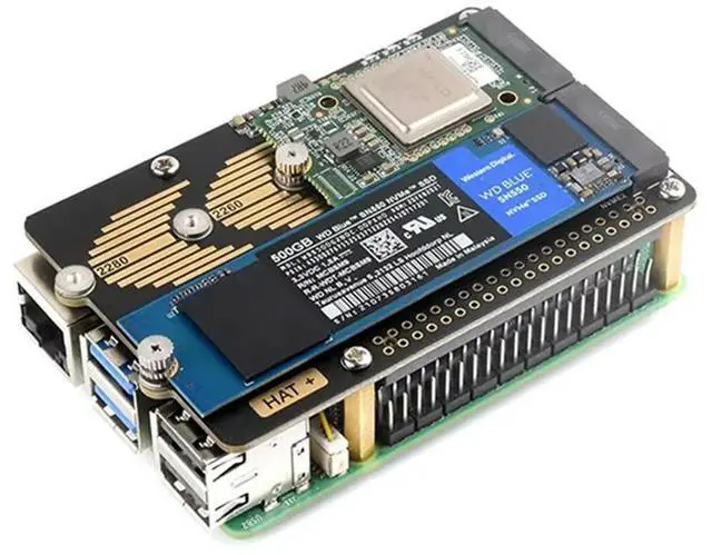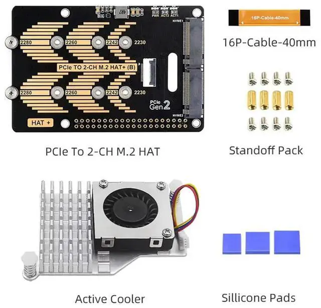 For Pi 5 Pcie To 2CH M. 2 HAT (B) Compatible 2280 Nvme M. 2 SSD HAT With 16P Cable 5Gbpsdata Rate With Cooler