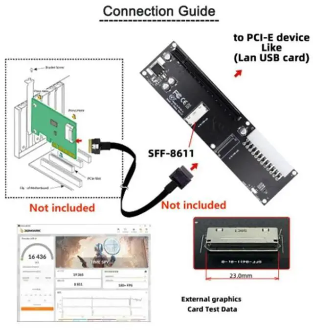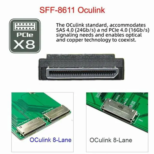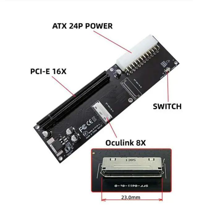 Oculink SFF-8612 8X to PCIE X16 PCI-Express Adapter with ATX 24Pin Power Port for Mainboard Graphics CardAA56