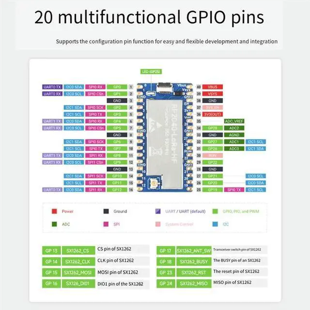 RP2040-Lora Development Board Kit+Adapter Board SX1262 850-930Mhz Development Board Supports GFSK Lora Durable Easy