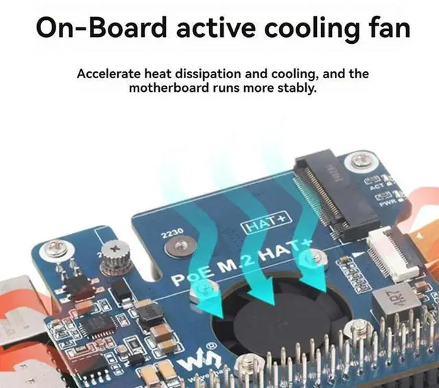For Raspberry Pi 5 POE + Pcie To M. 2 Nvme SSD Board HAT+ Pi5 2242/2230 Power Over Ethernet Support Nvme M2 Protocol-N33R