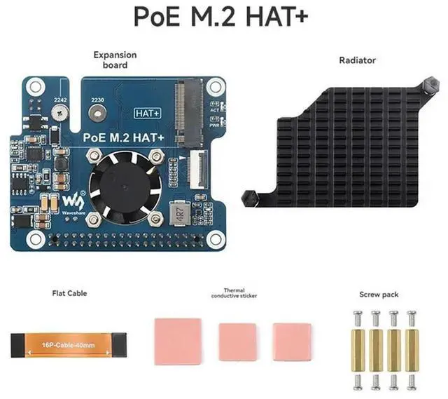 For Raspberry Pi 5 POE + Pcie To M.2 Nvme SSD Board HAT+ Pi5 2242/2230 Power Over Ethernet Support Nvme M2 Protocol-N33R