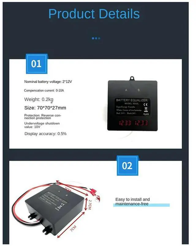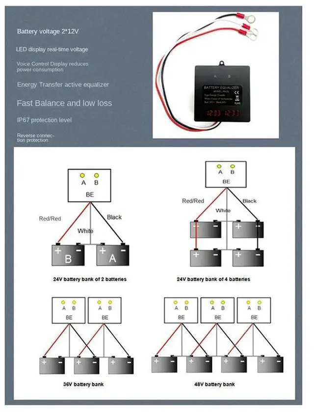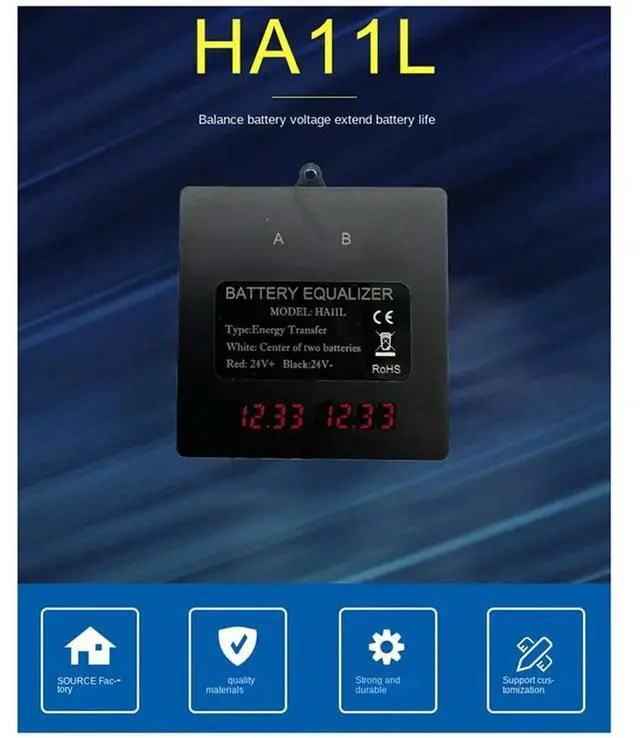 1 Piece LED Display Balancer HA12L Black For 24V Balancer 4S Active Voltage Lead Acid Li- Lifepo4 -N33