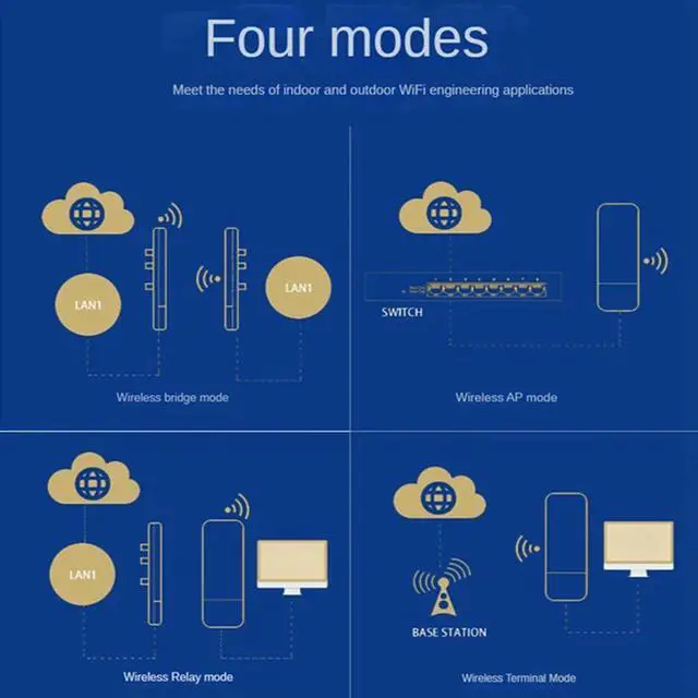 2Pcs Outdoor Wifi Router Wireless Bridge Router 1KM Long Range Wifi Extender 24V POE EU Plug-N33R