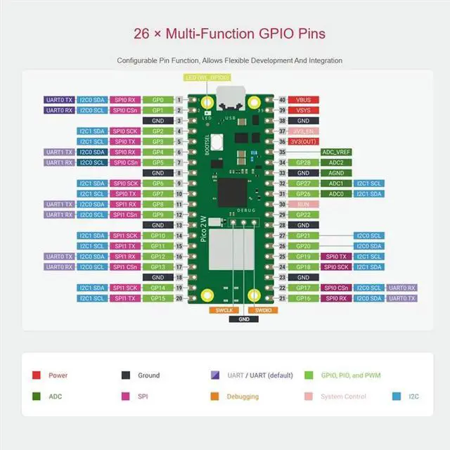 Pico 2 W Evaluation Kit For Pi Pico 2 W Microcontroller Board Based On RP2350 Chip Supports WIFI And Bluetoo