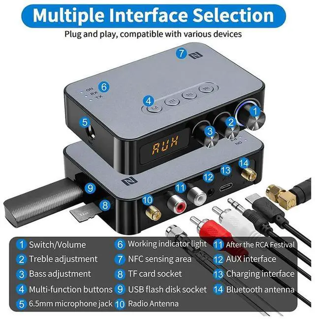 Bluetooth Adapter Audio Adapter Bluetooth 5.1 Transmitter Receiver For TV Home Stereo Wireless Audio Adapter With Remote Control