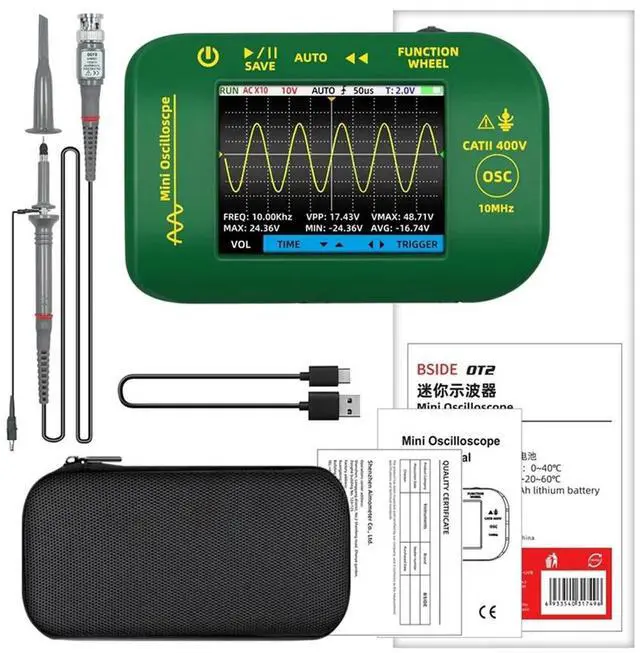 BSIDE OT2 Handheld Digital Oscilloscope 10Mhz Sampling Rate 1.5K sa/S Analog Bandwidth For Electronic Repair Tool Graphic Tester-