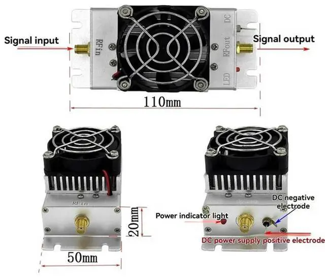 25Mhz-1.2Ghz 4W Wideband Power Amplifier Module 50Ohms RF Amplifier Module With SMA Female Connector