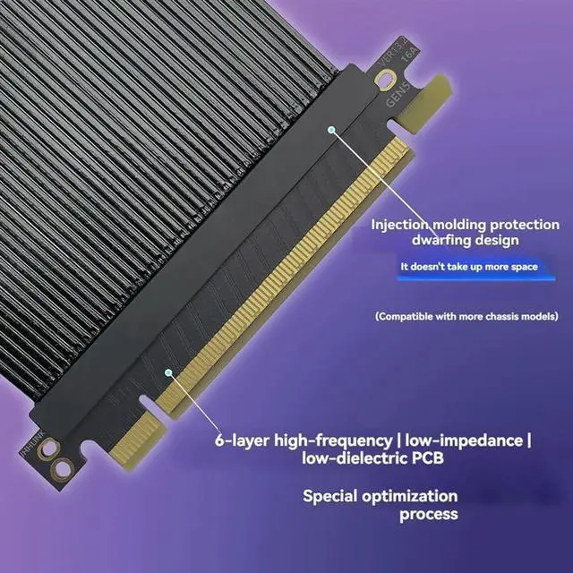 Pcie 5.0 X16 Riser Cable For H1 270° Reverse Right Angle Silver Plated Cable GEN 5/4 64GB/ S GPU Extension Cable