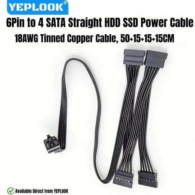 YEPLOOK 6Pin to 4 SATA Straight, HDD SSD SATA Power Cable for Corsair RM-i Type 4 RM1000i, RM850i, RM750i, RM650i Modular Power, 18AWG 50+15+15+15cm