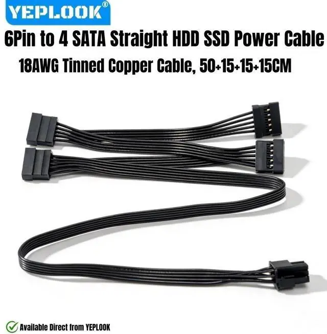 Compatibility: This 6Pin to 4x SATA Straight SSD HDD Power Cable is compatible with Corsair RM1000i, RM850i, RM750i, RM650i RM-i GOLD Type 4 Modular Powers.