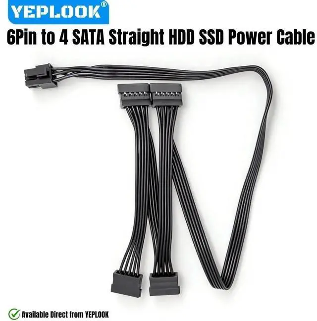This 6Pin to 4x SATA Straight SSD HDD Power Cable is compatible with Corsair RM Gold series modular powers.