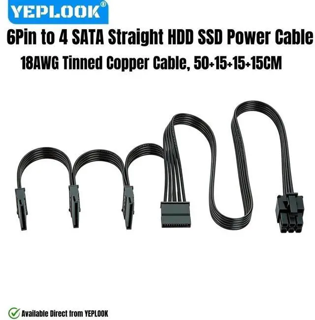 Package List: 1 Piece 6Pin to 4x SATA SSD HDD Power Cable for Corsair RM Gold Series Modular Powers.