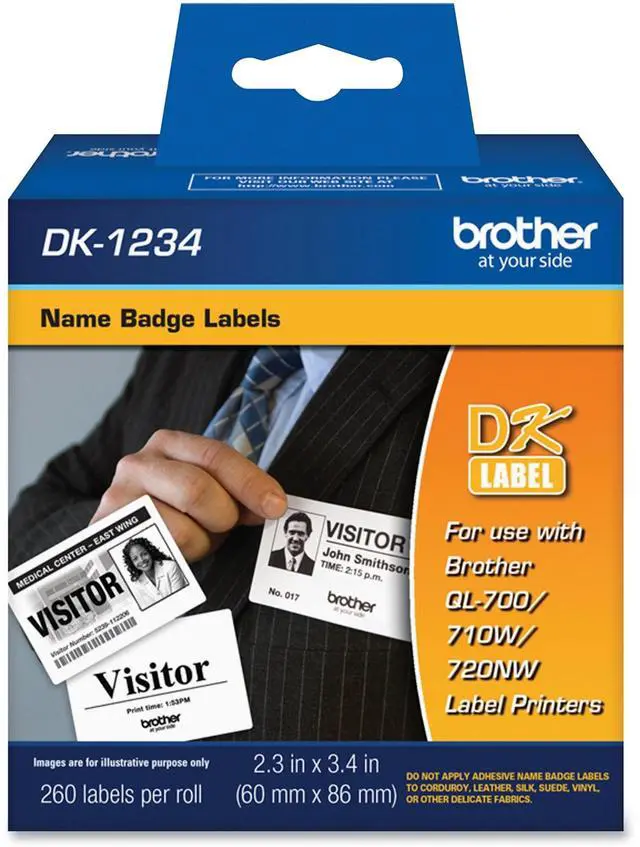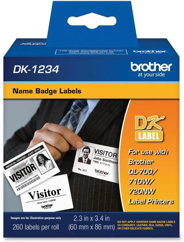 Create customized name badges instantly with these blank, die-cut labels. Self-adhesive firmly sticks to clothing while allowing easy removal. Flexible material bends with your clothing to prevent the edges from curling up. Name badge labels are designed for use with Brother QL-700, QL-710W and QL-720NW label printers (sold separately).
